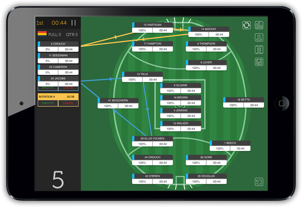 iSports Rotations app is the premium rotations management tool. Designed to be visually informative, including fatigue indicators to assist with managing player welfare and live rotations stats.
